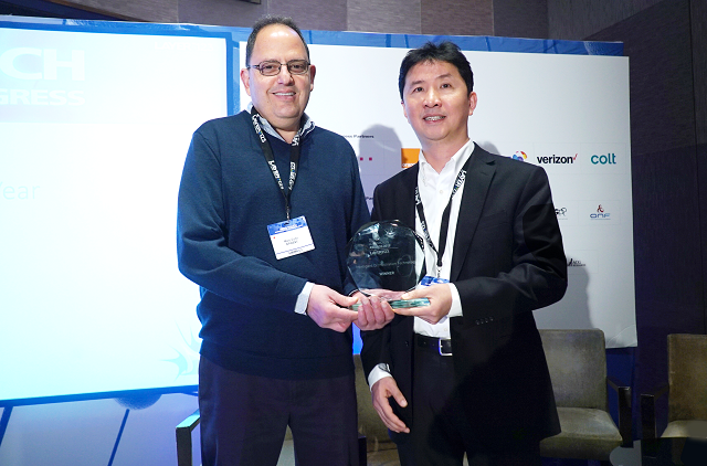 华为云核心网解决方案营销总监方昭江(右)接受颁奖